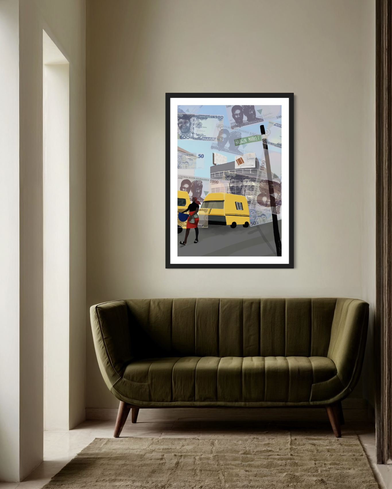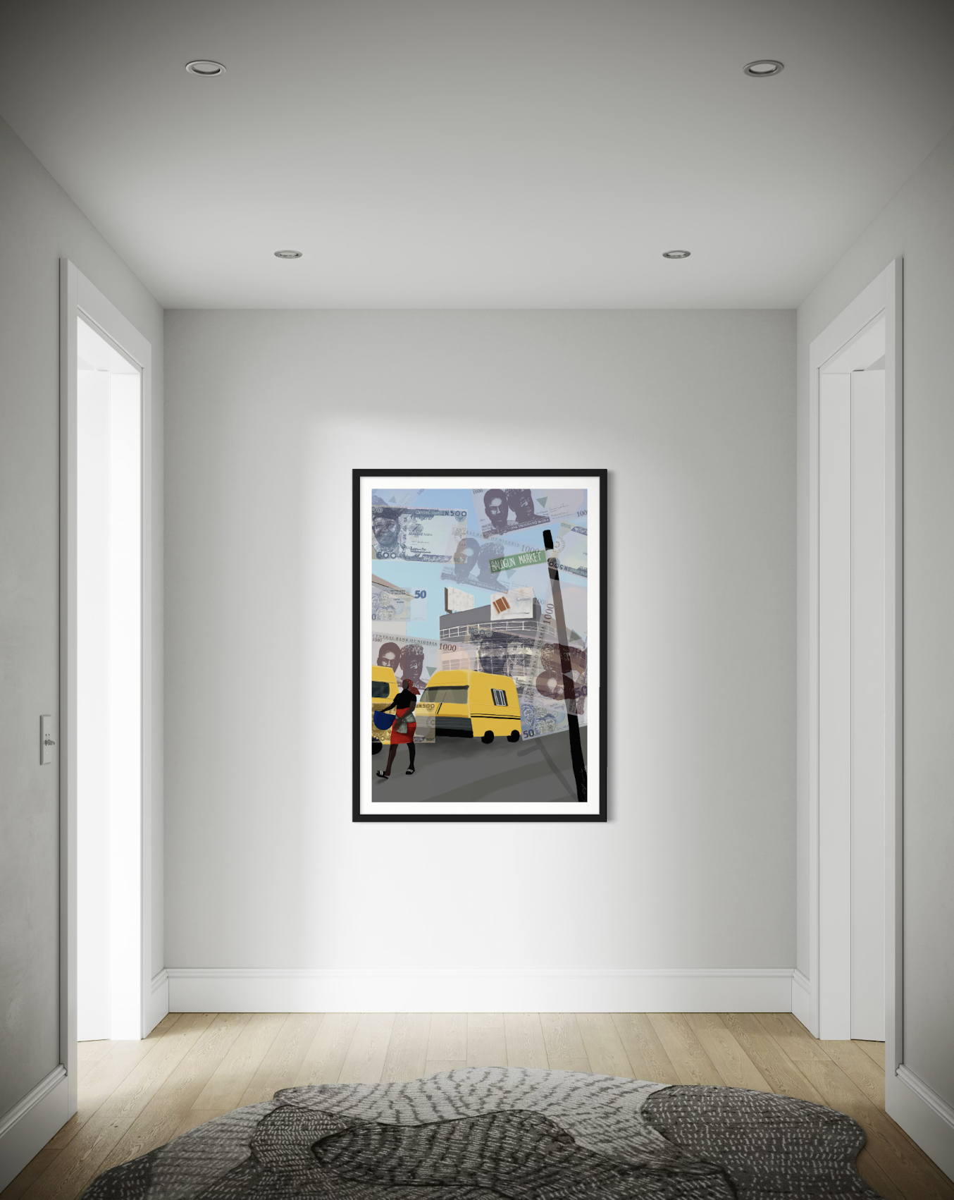 ‘Balogun Market’ is a unique representation of the Naira currency, with a particular emphasis on the more regularly used denominations, and the steady elimination of the smaller denominations in the Nigerian economy.