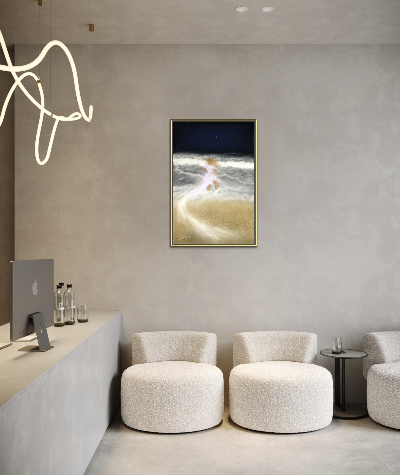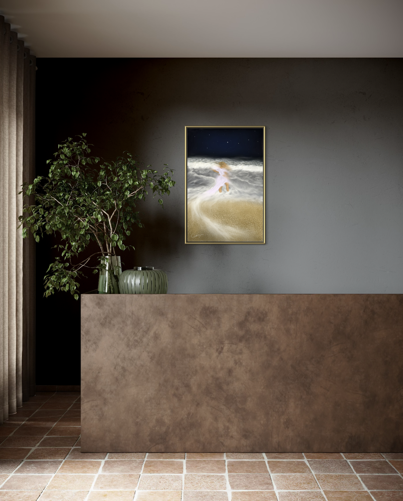 Inspired by a love for Lagos waterfront sceneries, the piece explores the balance between movement and stillness in the process of discovering and embracing the concept of ‘home’.